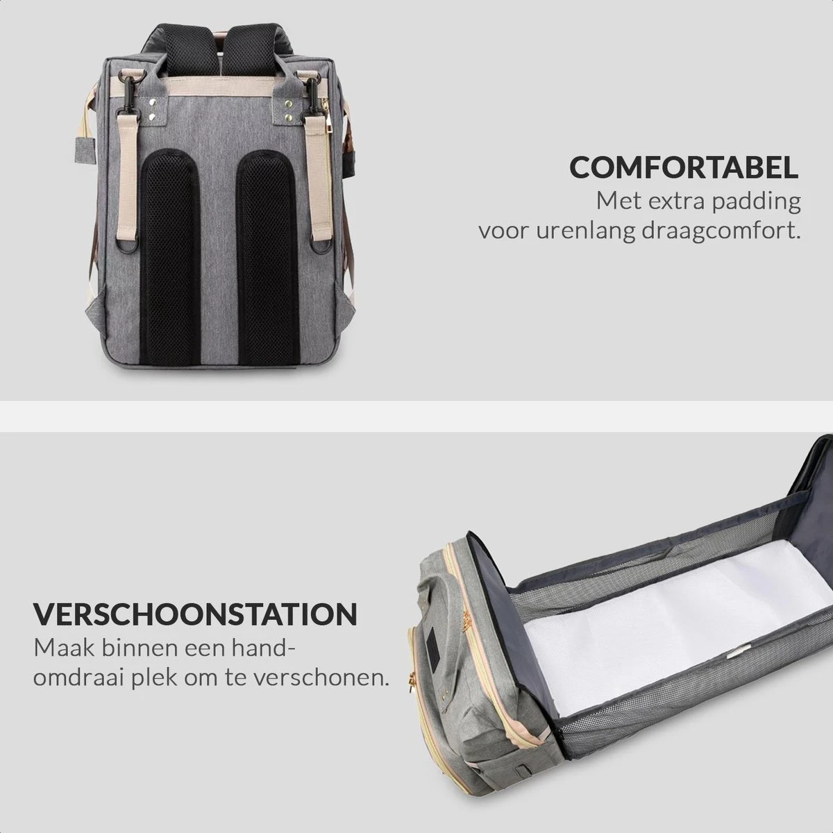 Je merkt pas de voordelen van een luiertas nadat je het hebt gebruikt. Eindelijk ben je verlost van al het gesjouw als je even met de kleine naar buiten gaat. Neem slechts één tas mee met alles wat je nodig hebt voor de baby. Met de aparte vakjes neem je is alles georganiseerd en binnen handbereik. Met drie geïsoleerde vakken voor thermosflesjes, Hou je voeding op de juiste temperatuur.De achterkant van de tas heeft een rits waarmee je snel bij de spullen onderaan in de tas kan, zonder dat je de hele tas hoeft door te graaien. Ook is er een waterdicht opbergvak om natte en vieze doekjes of kleding gescheiden te houden van de rest.