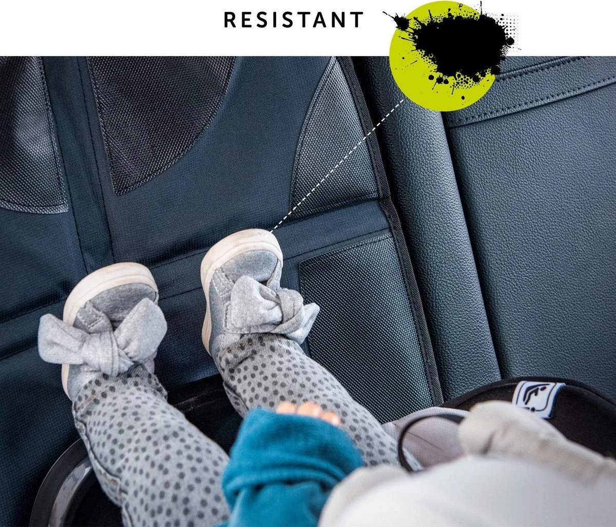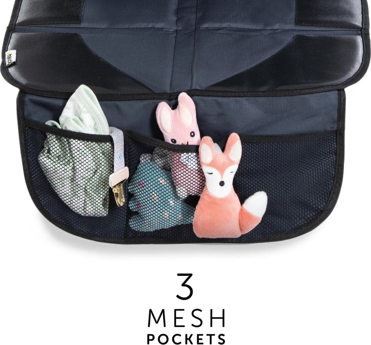 De perfecte bescherming voor de stoelbekleding van de auto tegen krassen en beschadigingen veroorzaakt door autostoeltjes. Deze universele onderlaag of mat is uiterst duurzaam. Dankzij de geïntegreerde uitsparingen voor de ISOFIX bevestigingen, deze onderlaag mat is geschikt voor alle autostoelen en (baby)autostoeltjes. Zowel de bovenkant en de onderkant zijn gemaakt van anti- slip materiaal en daarmee wordt voorkomen dat het autostoeltje beweegt tijdens het autorijden. Geïntegreerde zakken aan de voorkant bieden opbergruimte voor kleine voorwerpen. Waterbestendig en wasbaar.