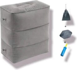 Dit opblaasbare kussen is onmisbaar als je op reis gaat met kleine kinderen. Doordat de kinderen in het voertuig kunnen slapen zullen zij minder vermoeid zijn. Maar ook voor jezelf biedt het in veel situaties extra comfort. Gebruik het als een voetensteun tijdens een lange zakenreis in de auto, trein of als vliegtuigkussen. Ook thuis of op kantoor biedt het voetkussen een aangename verlichting voor de benen en voeten.