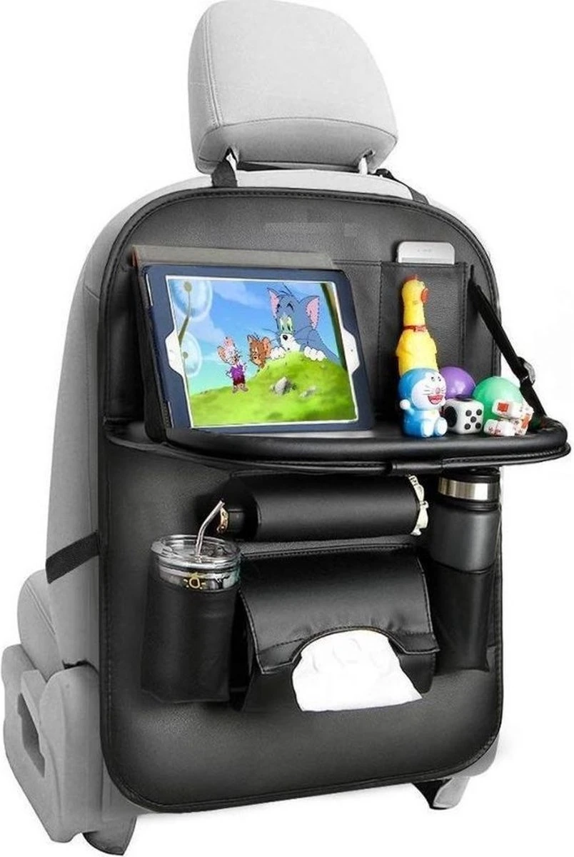 Met de Autostoel Organizer met Tray reis je comfortabel en georganiseerd. De uitklapbare tafel, tablet- en telefoonhouder, en fleshouder bieden de perfecte opbergoplossing voor al je essentials. Het duurzame mat zwart PU leer kunstleer is sterk, stijlvol en eenvoudig schoon te houden, en zorgt ervoor dat je alles op één plek bij de hand hebt. Maak elke reis comfortabel en georganiseerd met de Autostoel Organizer met Tray!
