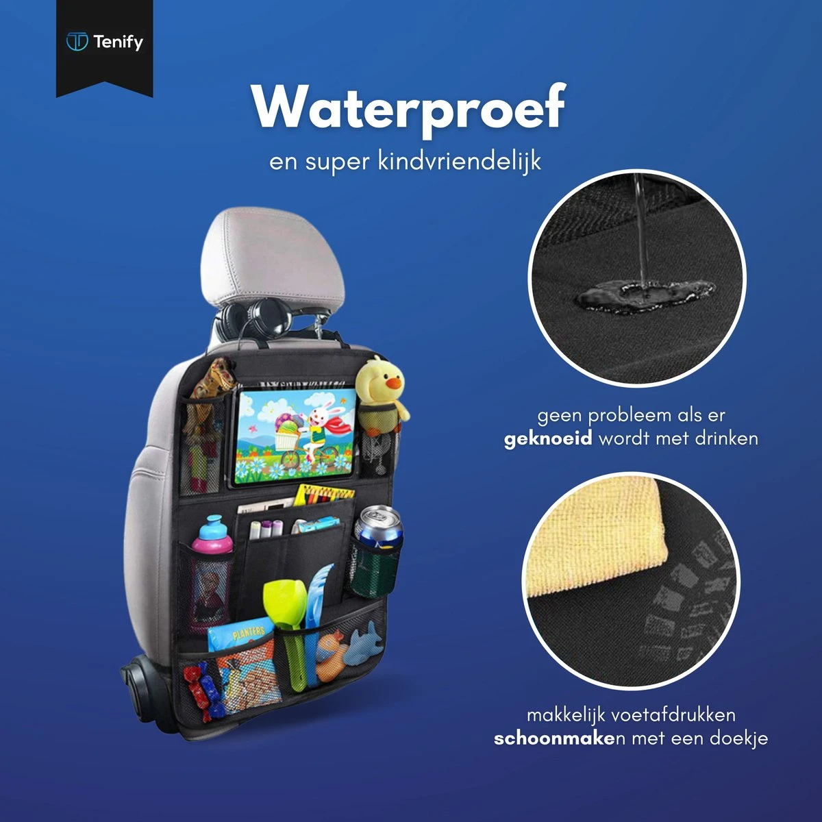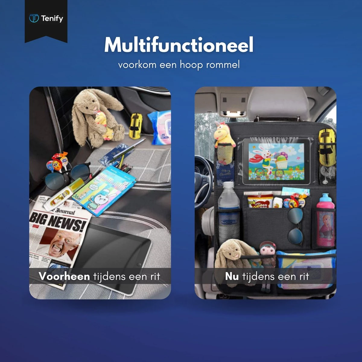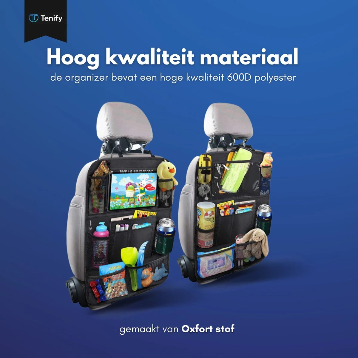 De organizer voorkomt een hoop rommel in de auto. Maar het bevat nog meer. Met deze Tenify organizer bescherm je de achterkant van de stoel en kunnen de kinderen met hun tablet/iPad (tot 10 inch) gemakkelijk hun gang gaan met de zekerheid dat de tablet/iPad niet beschadigd. Daarbij bestaat dit product uit een set van 2, waardoor je gelijk voor beide stoelen een organizer hebt.