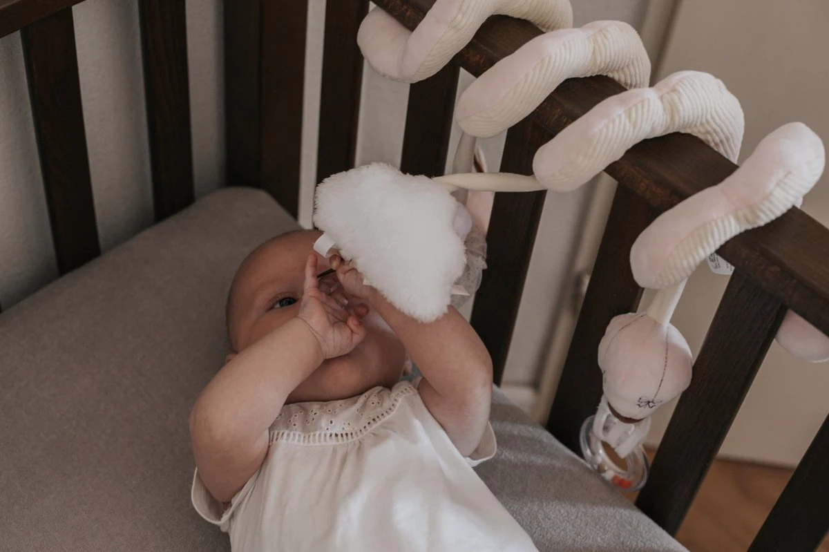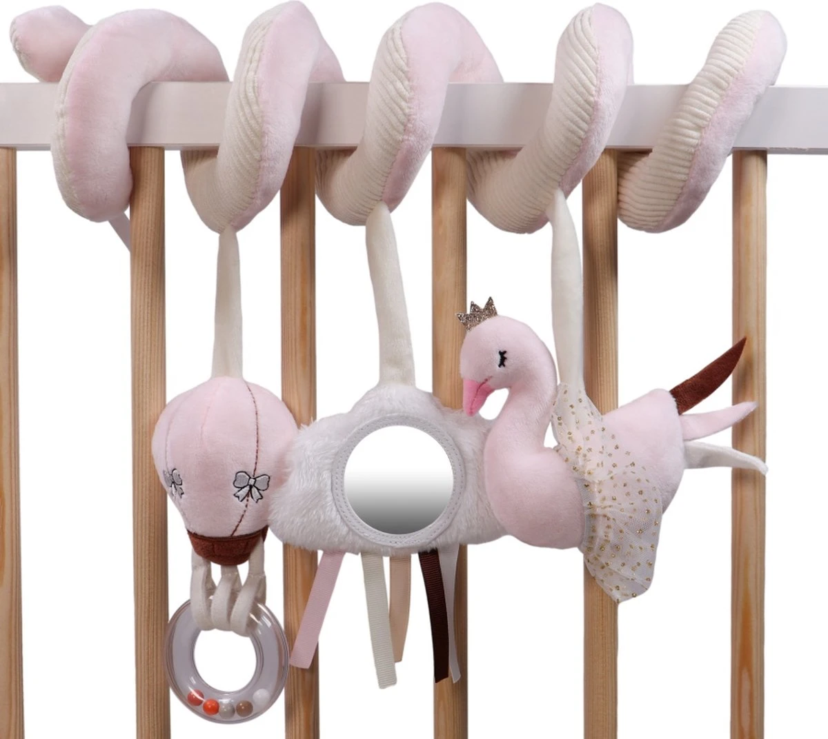 Deze boxspiraal van Tryco houdt je kleine meid gezelschap tijdens een slaapje of een wandelrondje! De Swan Ivy boxspiraal kent verschillende kleuren, geluidjes en texturen! Door de spiraalvorm kan hij gemakkelijk bevestigd worden aan de box, autostoel of kinderwagen waardoor hij altijd bij je kleintje in de buurt is!